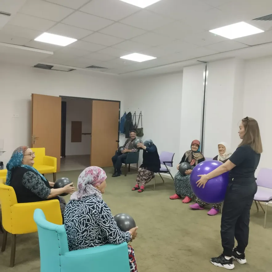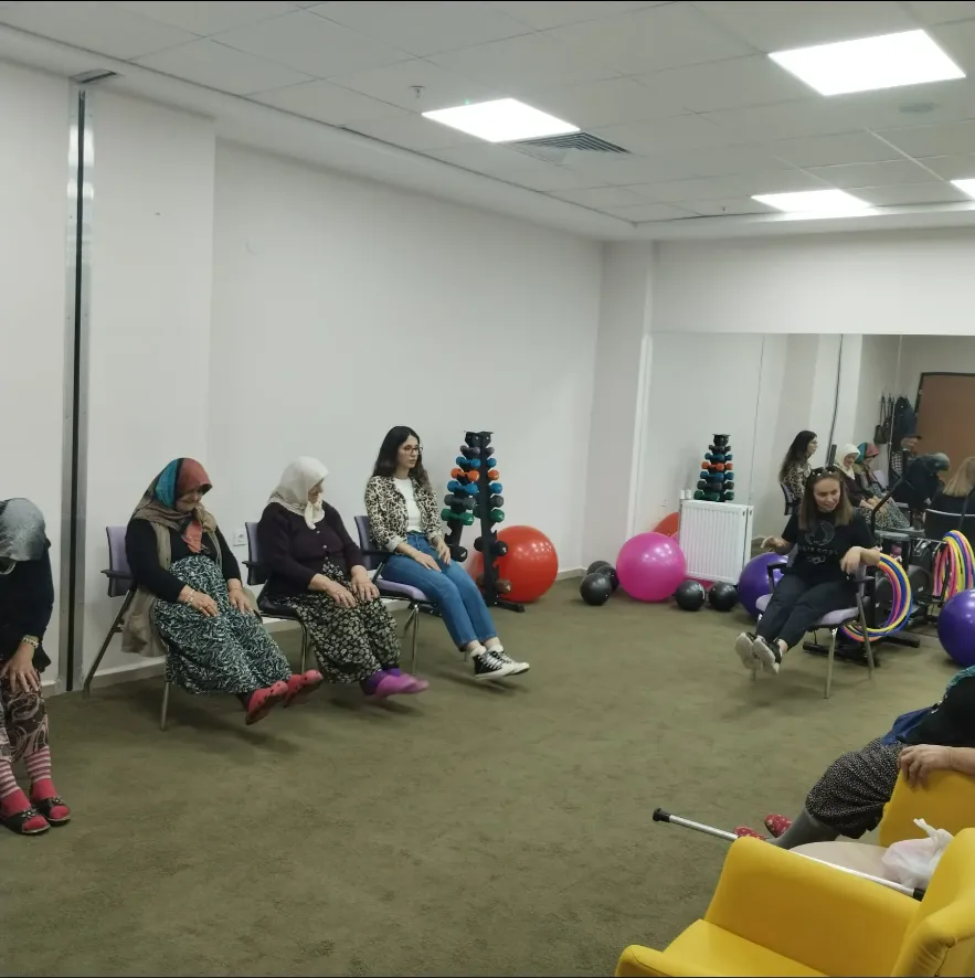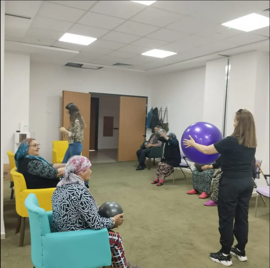Katılımcılar, kas gücünü artırmaya yönelik egzersizlerin yanı sıra denge geliştirme ve genel sağlık durumunu destekleyen hareketlerle hem fiziksel hem de zihinsel olarak aktif kalma fırsatı buluyor.